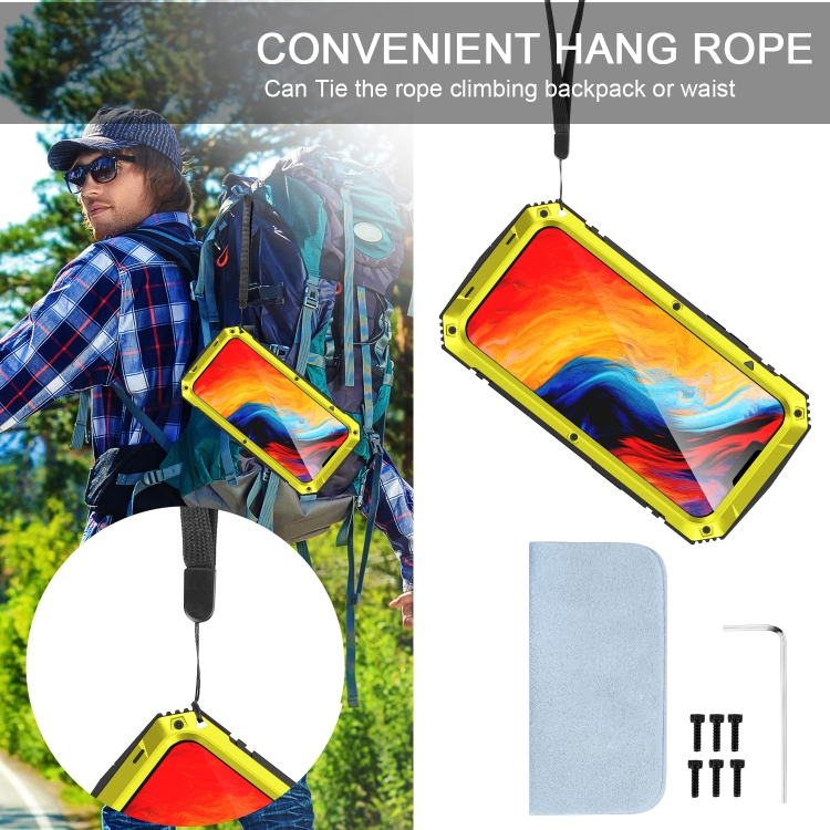 6. Anti-caída, a prueba de polvo, resistente al agua, diseño de agarre curvo, lente con protección integral de vidrio.