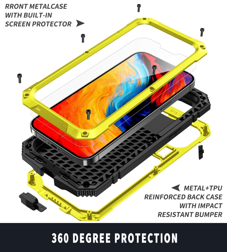 Estuche para iPhone 14 R-Just Impermeable a Prueba de Golpes y Polvo con Soporte (Amarillo)