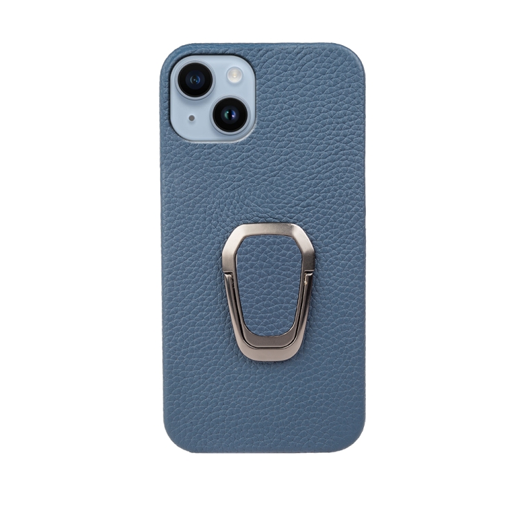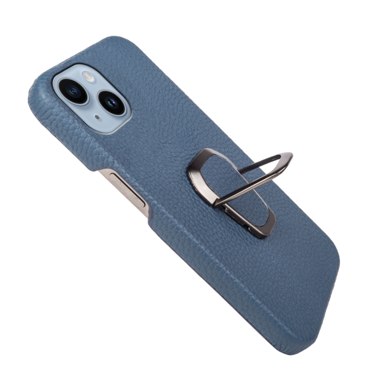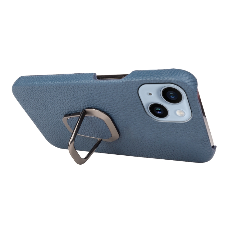 Funda para iPhone 14 Ring Holder Litchi Texture Cuero Genuino (Azul)