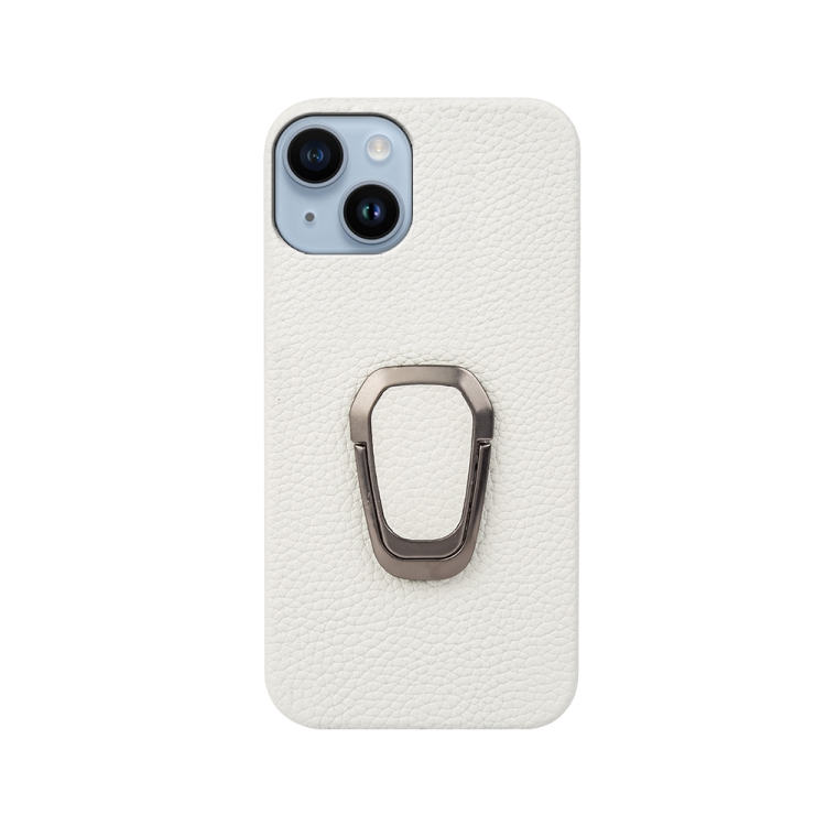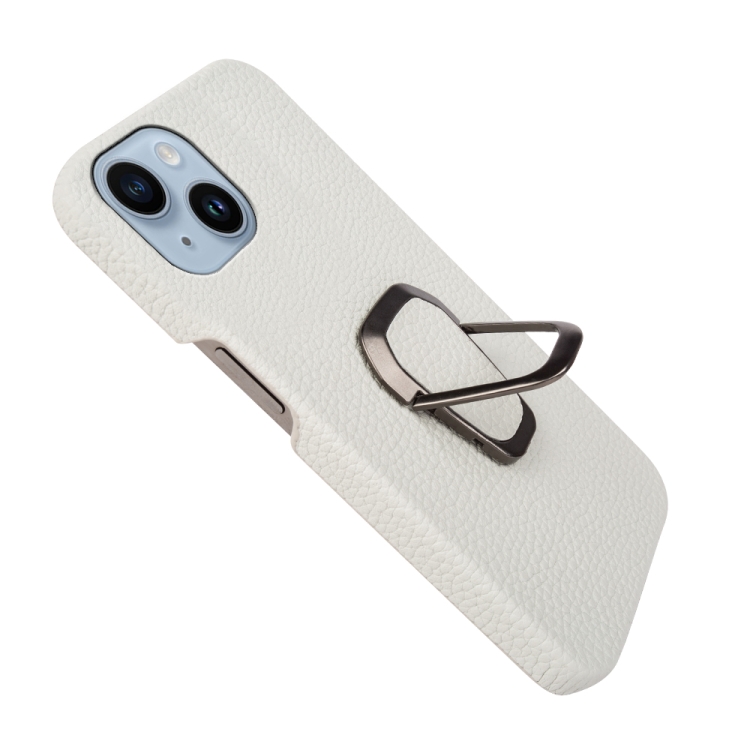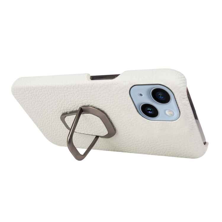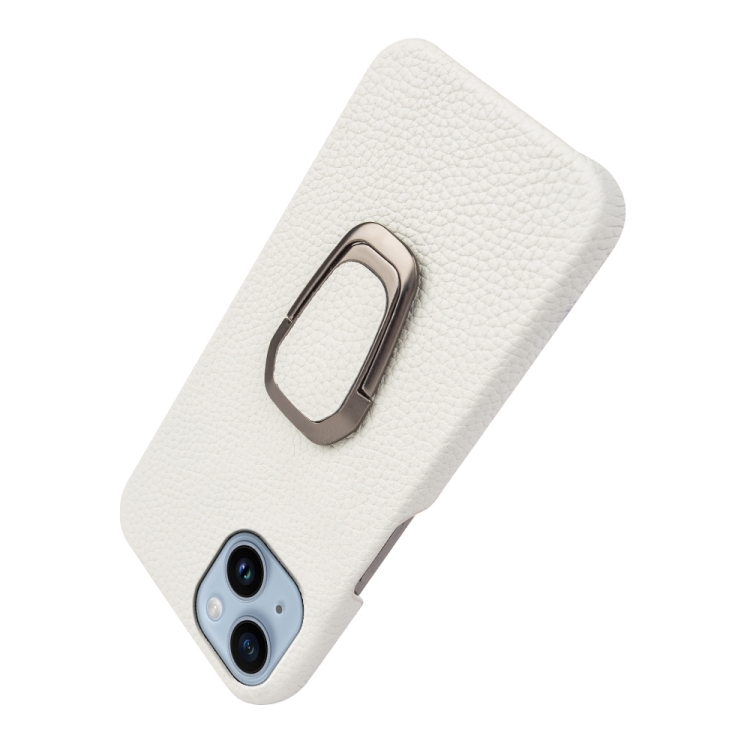 Funda para iPhone 14 Ring Holder Cuero Genuino Litchi Texture (Blanco)