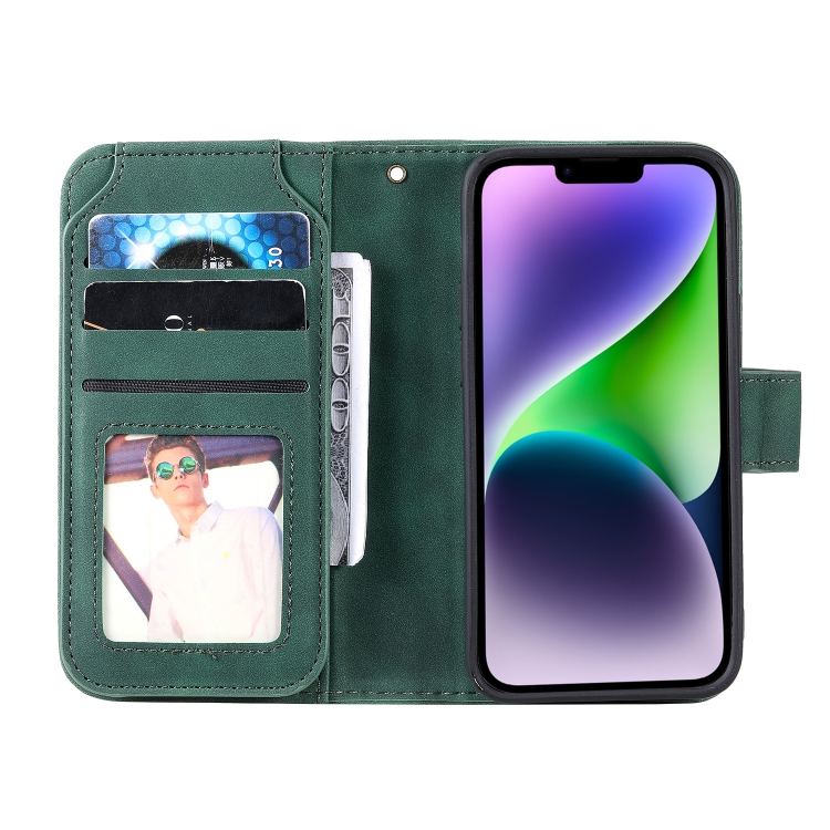 Funda para iPhone 14 Skin Feel Multi-Card Wallet de Cuero (Verde)
