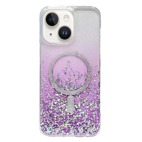 Pour iPhone 15 Étui de téléphone hybride PC MagSafe TPU à paillettes dégradées (dégradé violet)