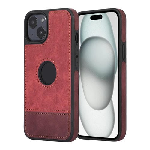 Funda para Teléfono iPhone 15 de PU con Recorte Hueco y Costura con Empalme (Rojo)