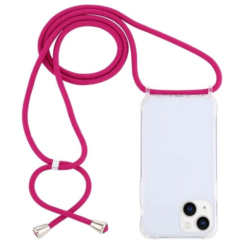 Pour iPhone 15 Étui de protection de téléphone antichoc en acrylique transparent avec lanière (rose rouge)