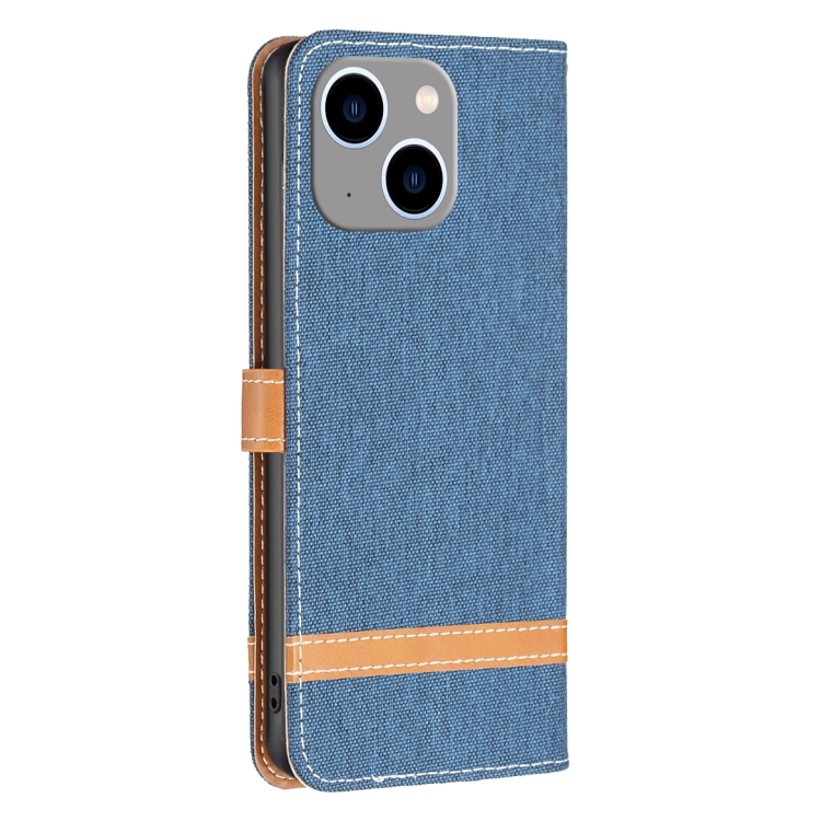 Funda para iPhone 15 Plus Color Block Denim Texture Leather Phone Case (Azul Oscuro)