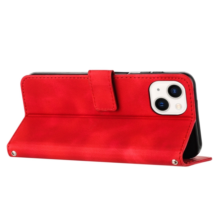 Funda de Cuero Dream Triangle para iPhone 15 Plus con Cordón (Rojo)