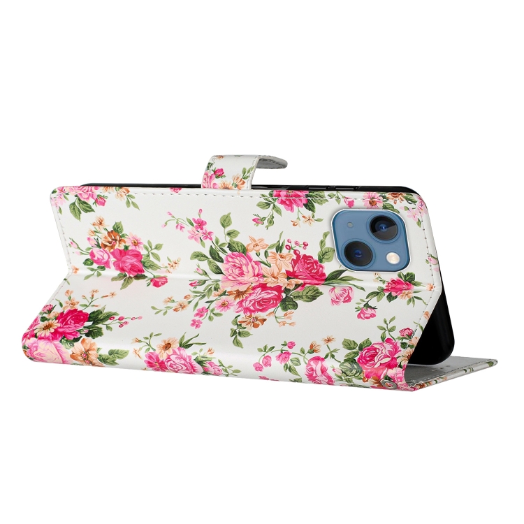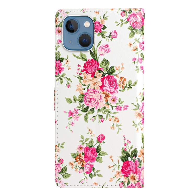 Funda de teléfono iPhone 15 Plus cuero con dibujo a color (Peonías)