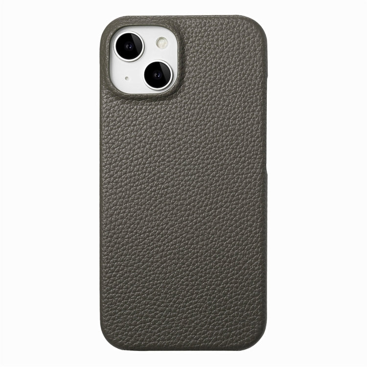 Funda para Teléfono iPhone 15 Plus Cuero Litchi Oil Edge Parte Trasera (Gris)