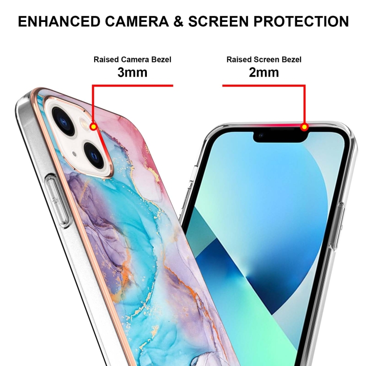 Estuche para iPhone 15 Plus TPU Patrón Galvanoplastia Imd a Prueba de Golpes (Mármol Azul de la Vía Láctea)