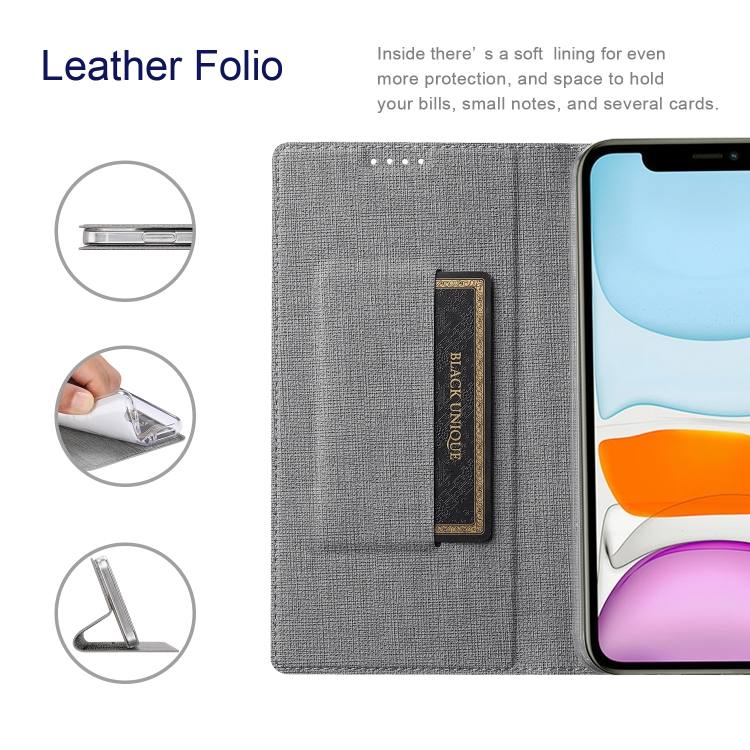 Funda para iPhone 15 Plus Vili Dmx Series con Tapa Horizontal Magnética de Cuero TPU + Pu (Gris)