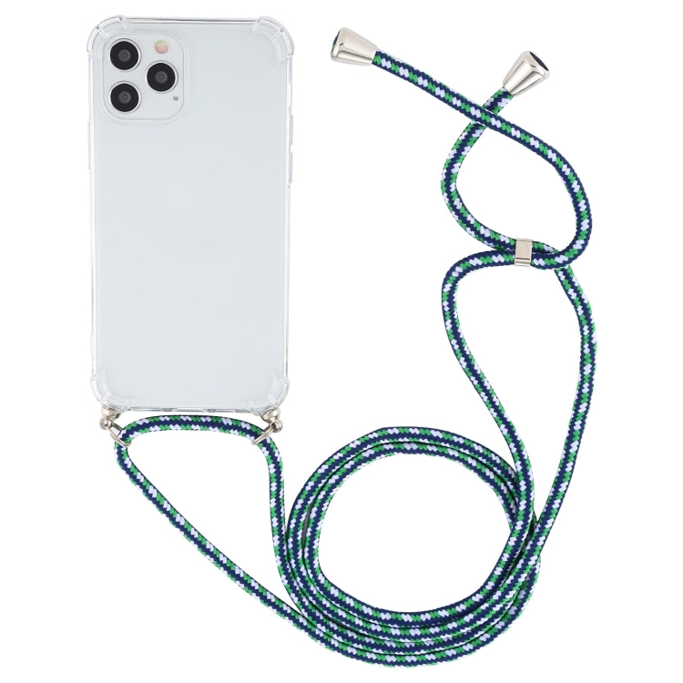 Funda para iPhone 15 Pro TPU Transparente a Prueba de Golpes Cuatro Esquinas con Cordón (Verde, Azul, Blanco)