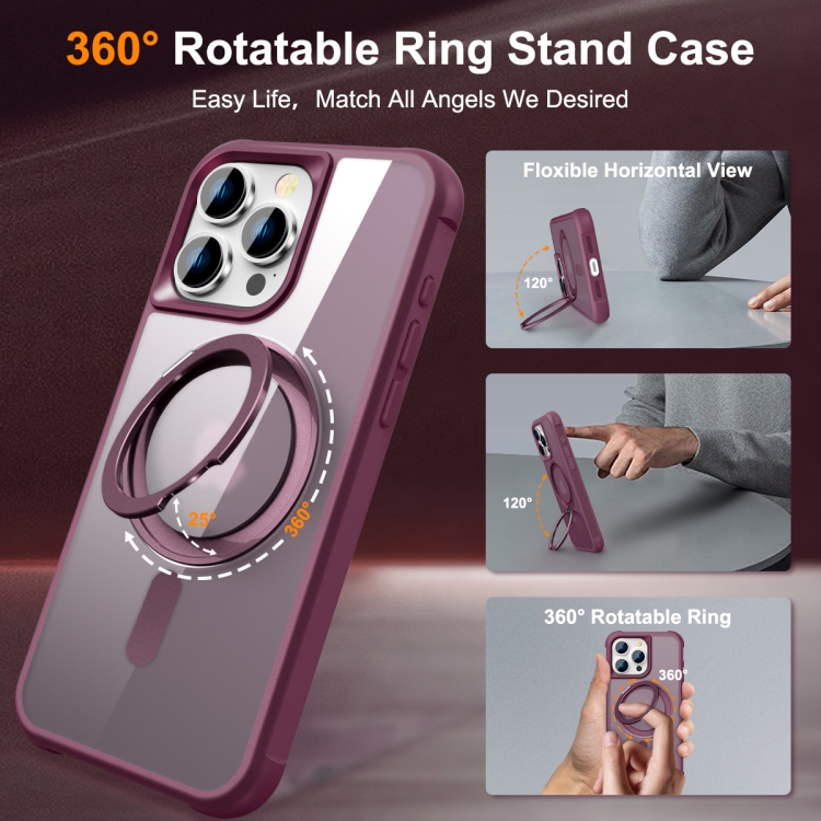 Funda para teléfono iPhone 15 Pro Magsafe con soporte giratorio magnético (Rojo Vino)