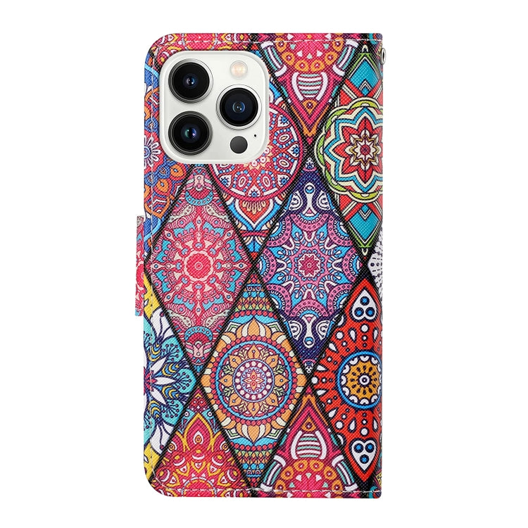 Funda para iPhone 15 Pro Max Flip de Cuero con Dibujo 3D Coloreado Tótem de Rombo