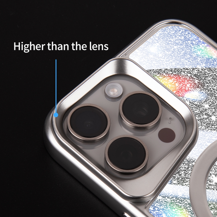Estuche para Teléfono iPhone 15 Pro Max Blade Magsafe con Purpurina y Degradado Magnético para PC (Blanco Plateado)