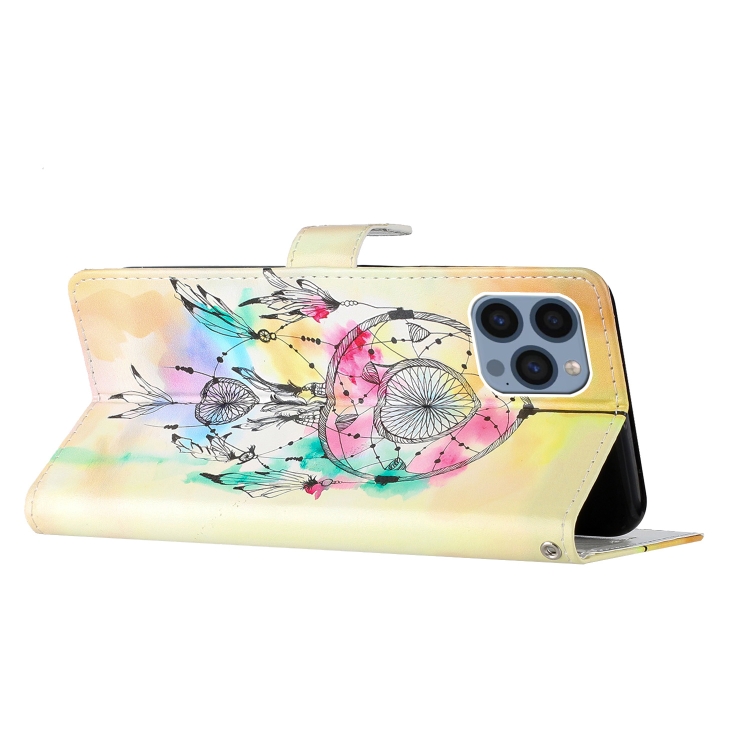 Estuche para Teléfono iPhone 15 Pro Max Cuero con Dibujo Coloreado Atrapasueños