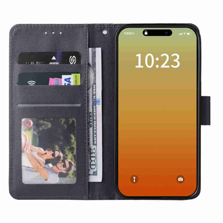 Funda para Teléfono iPhone 15 Pro Max Cuero Tapa Horizontal Multifuncional Tres Ranuras (Azul)