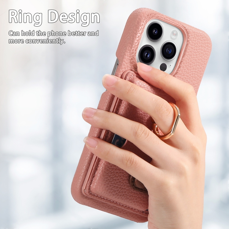 Funda para Teléfono iPhone 15 Pro Max Litchi Leather Oil Edge Ring Card Back (Rosa)