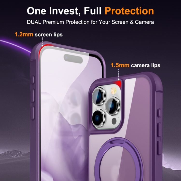 Funda para Teléfono iPhone 15 Pro Max Magsafe con Soporte Giratorio Magnético (Púrpura)