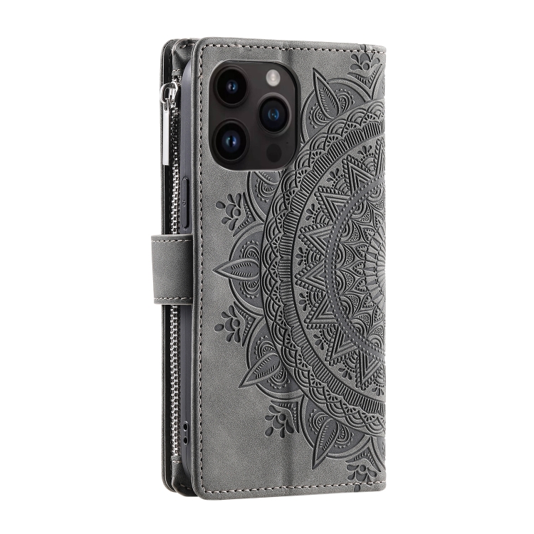 Funda de Cuero para iPhone 15 Pro Max Multi-Card Totem con Cremallera (Gris)
