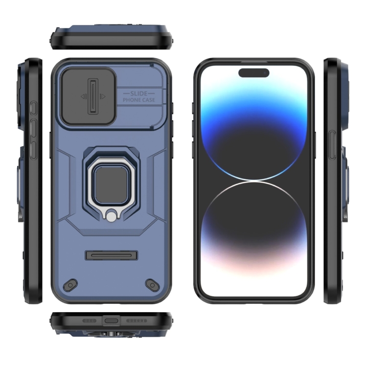 Estuche para Teléfono iPhone 15 Pro Max Sliding Camshield TPU + PC a Prueba de Golpes con Soporte (Azul)