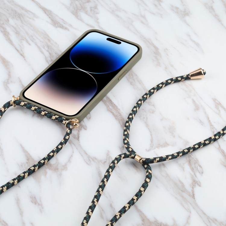 Funda para Teléfono iPhone 15 Pro Max Wheat Straw TPU a Prueba de Golpes con Cordón para El Cuello (Verde Oscuro)