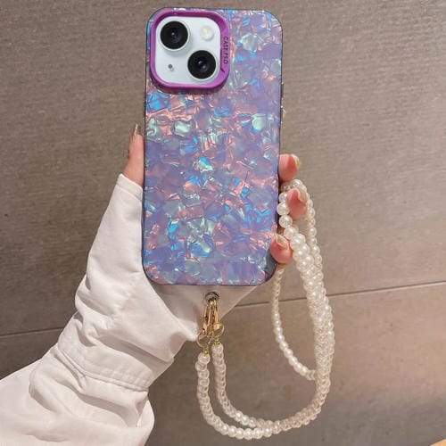 Funda para iPhone 15 Shell Texture Crossbody Cadena de Perlas TPU Acrílico Híbrido (Púrpura)