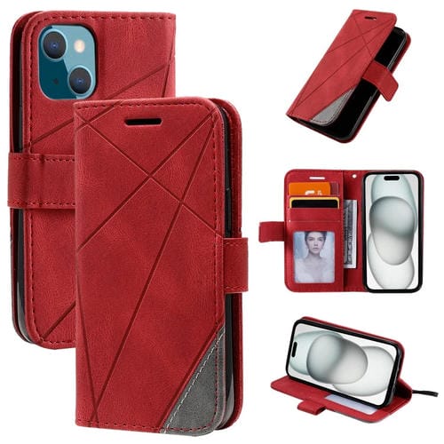 Funda para Teléfono iPhone 15 Skin Feel Splicing Cuero (Rojo)
