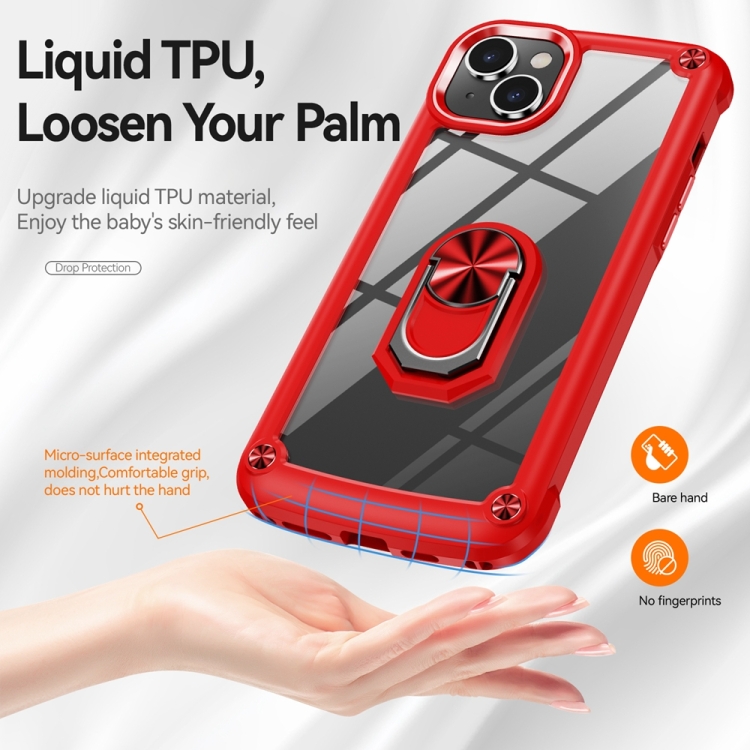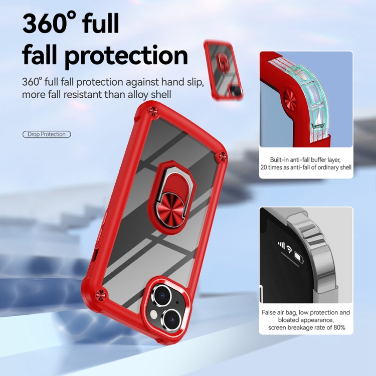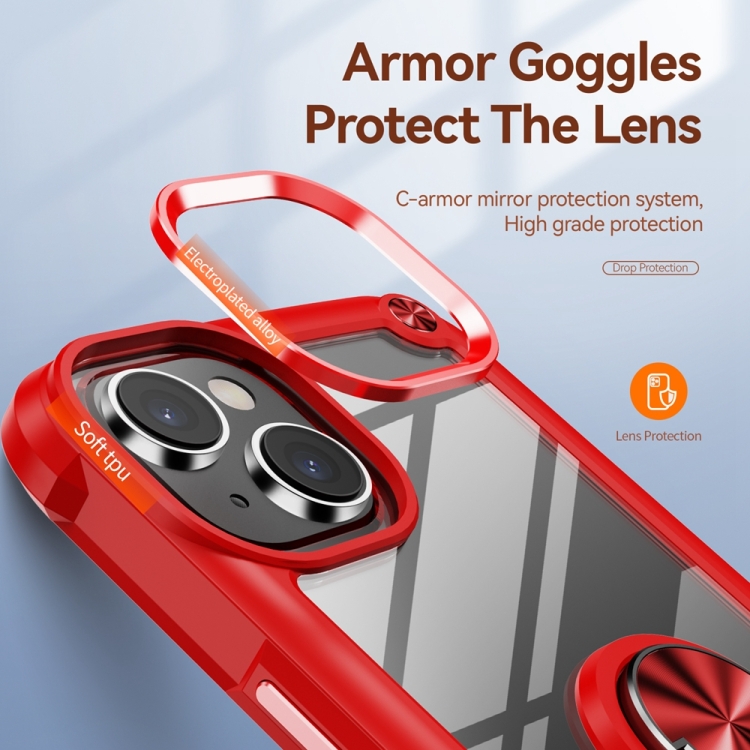 Estuche para Teléfono iPhone 15 TPU + PC Protección de Lente con Soporte para Anillo (Rojo)