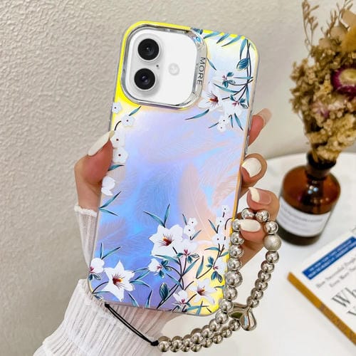 Estuche para Teléfono iPhone 16 Plus Morning Glory Ah16 Flor Láser Galvanizada con Correa