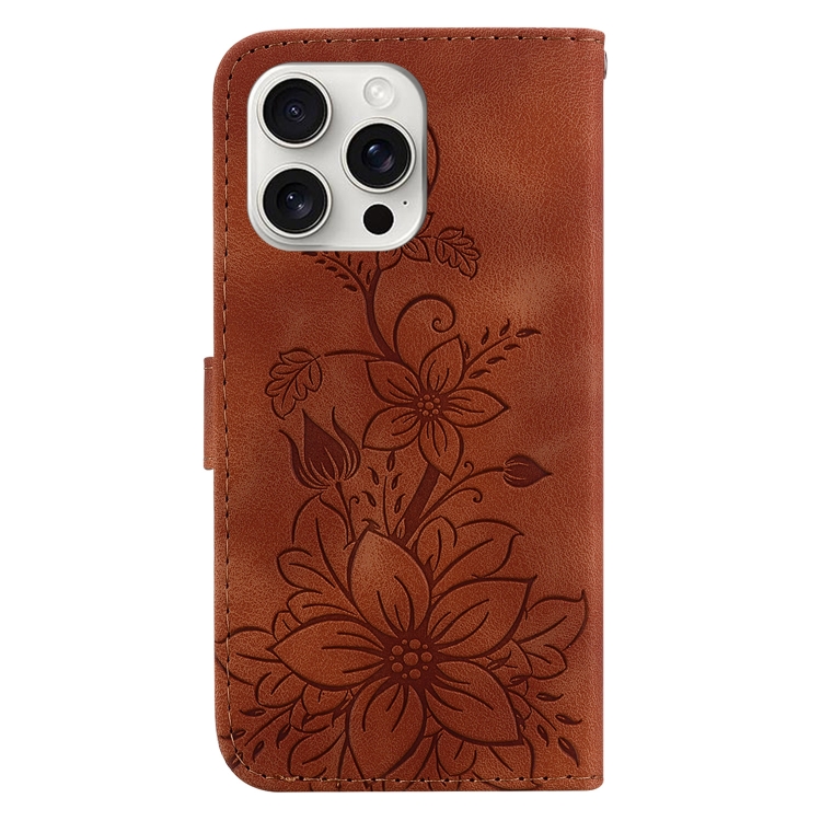 Funda para Teléfono iPhone 16 Pro Lily Cuero En Relieve (Marrón)