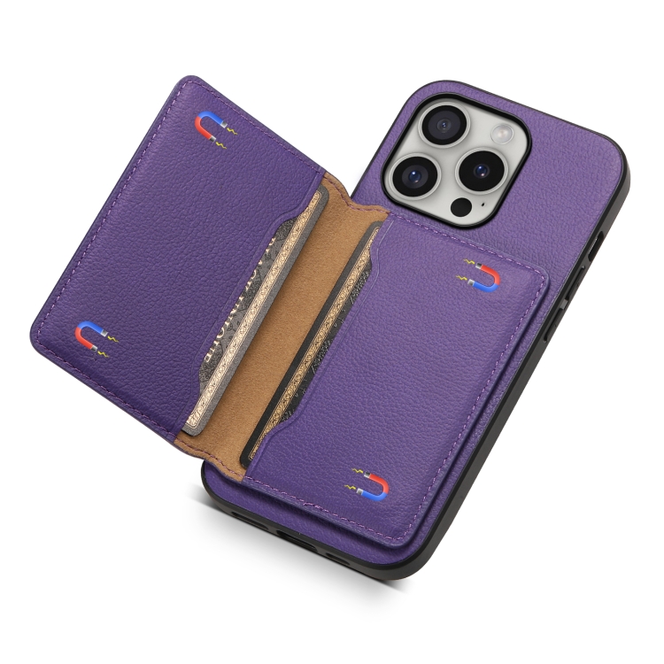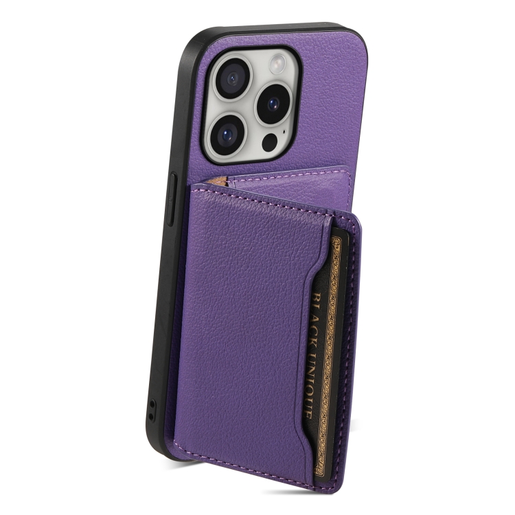 Estuche para Teléfono iPhone 16 Pro Max Diseño Bolsa para Tarjetas Textura Pantorrilla (Púrpura)