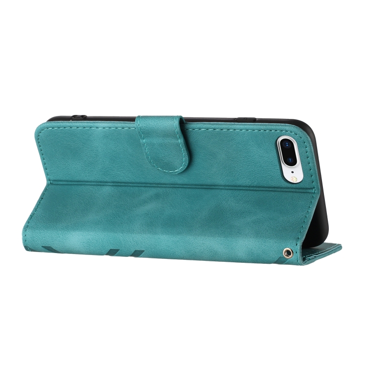 Funda para iPhone 6 Plus 7 Plus 8 Plus Line Pattern Skin Feel Leather Phone Case (Azul Claro)