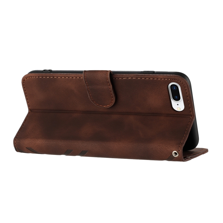 Funda para iPhone 6 Plus 7 Plus 8 Plus Line Pattern Skin Feel Leather Phone Case (Café)