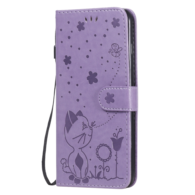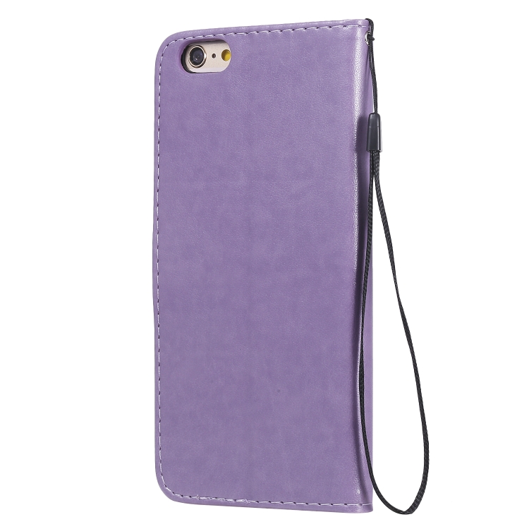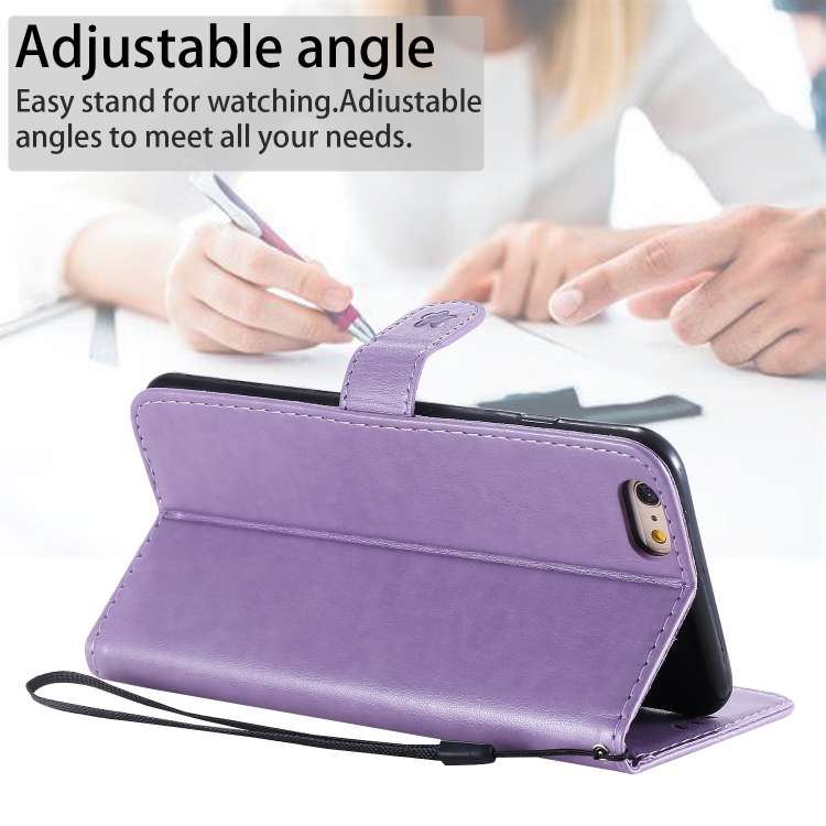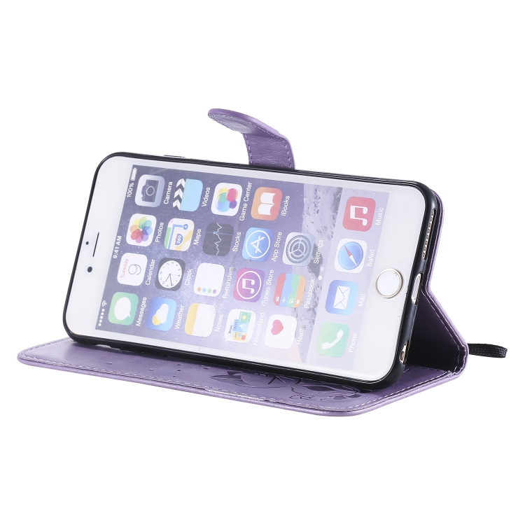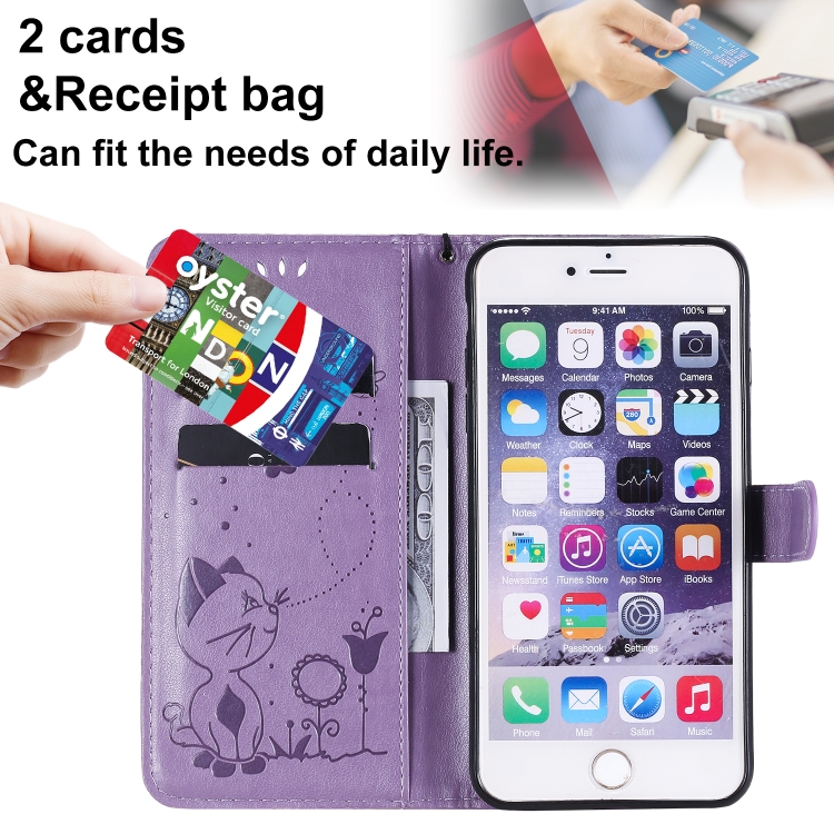 Funda de Cuero Cat Bee para iPhone 6 Plus con Patrón de Relieve, Tapa Horizontal, Soporte y Ranuras para Tarjetas (Púrpura)