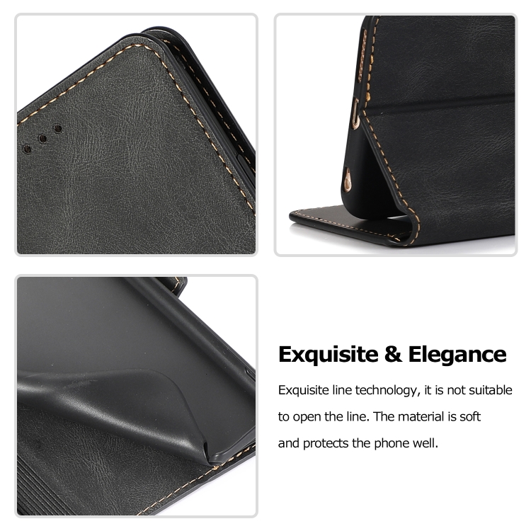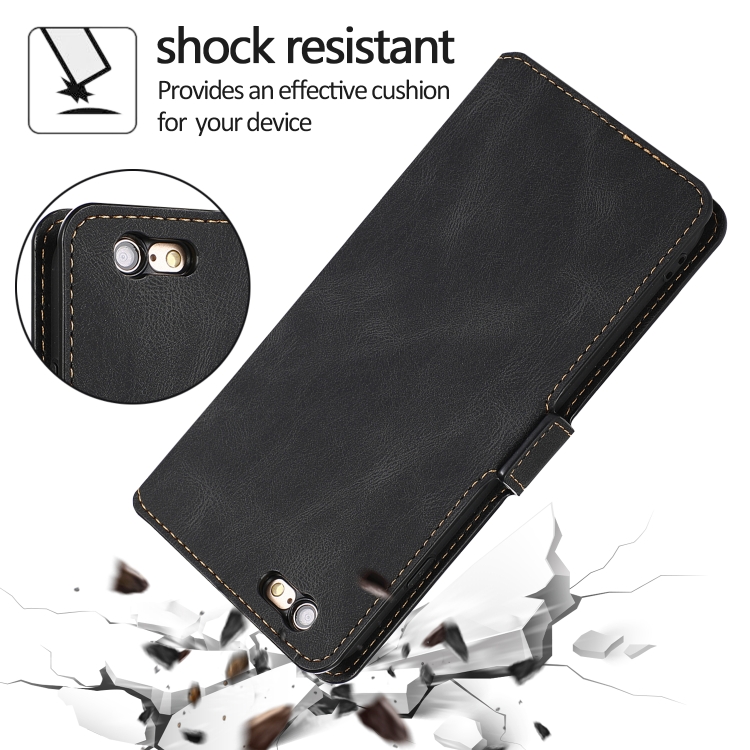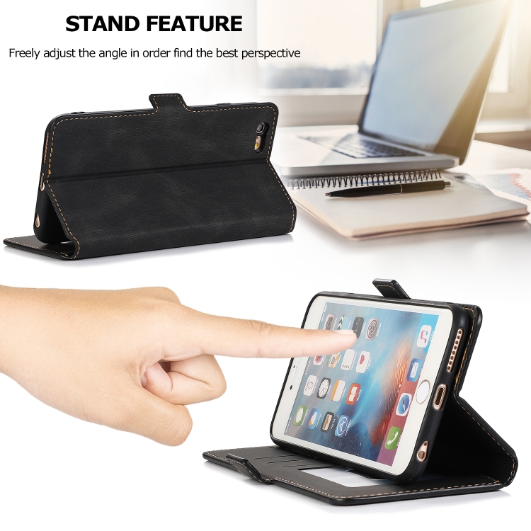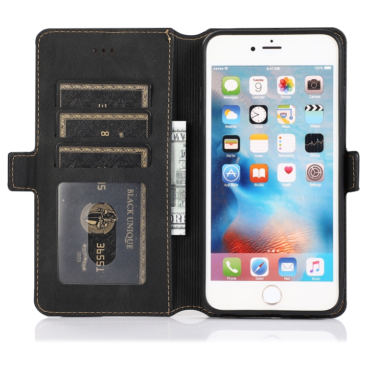 Estuche de Cuero para iPhone 6 Plus con Cierre Magnético Horizontal Soporte Ranuras Tarjetas Marco Fotos Billetera (Negro)
