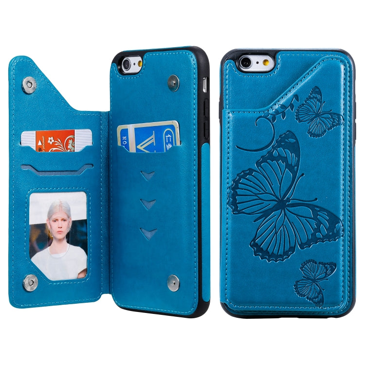 Pour iPhone 6 Plus Étui de protection antichoc à motif de gaufrage de papillon avec support, fentes pour cartes et cadre photo (bleu)