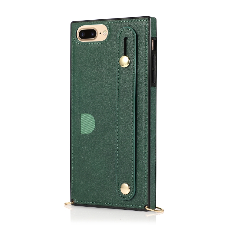 Funda Protectora para iPhone 6 Plus PU + TPU a Prueba de Golpes con Cordón Cruzado Soporte y Ranura para Tarjeta (Verde)
