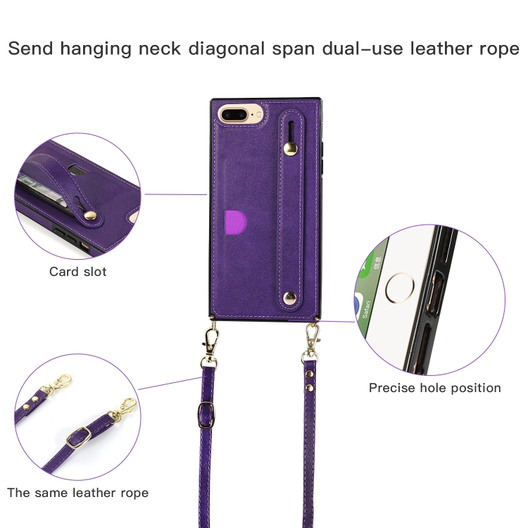 Funda Protectora para iPhone 6 Plus PU y TPU con Strap, Lanyard, Holder y Tarjeta Slot (Púrpura)