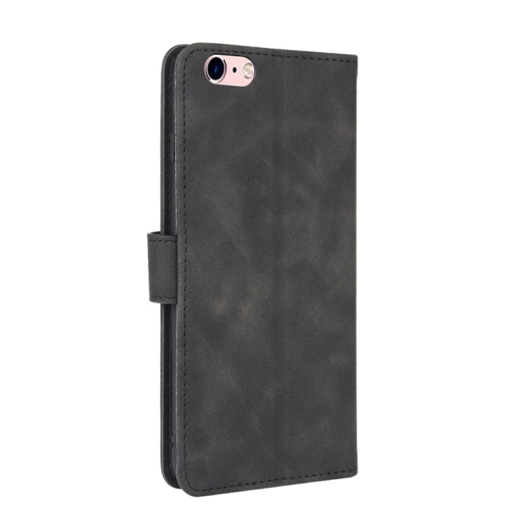 Funda para iPhone 6 Plus y 6S Plus Hebilla Magnética Piel Sintética Textura Becerro Abatible Horizontal con Soporte y Ranuras para Tarjetas (Negro)