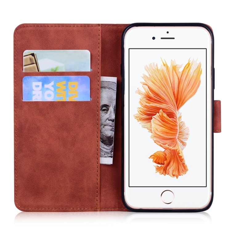 Funda de cuero Tiger Embossing para iPhone 6S / 6 con tapa horizontal, soporte, ranuras para tarjetas y billetera (Marrón)