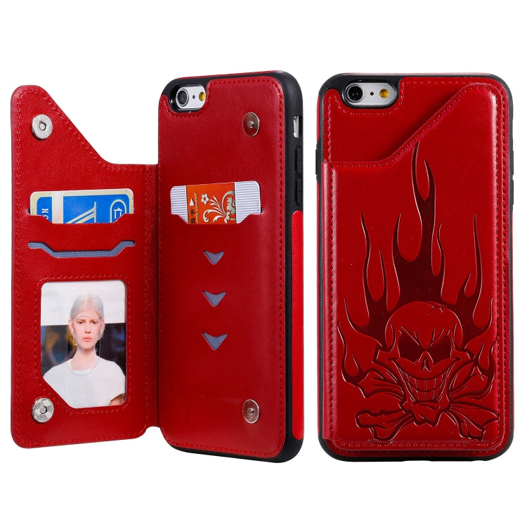 Pour iPhone 6s Plus / 6 Plus Étui de protection antichoc à motif en relief avec tête de crâne avec support, fentes pour cartes et portefeuille (rouge)