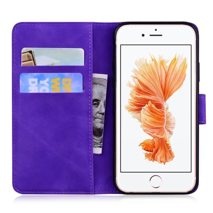 Funda de Cuero para iPhone 6S Plus y 6 Plus Tiger Embossing con Tapa Horizontal Soporte Ranuras y Billetera (Morado)
