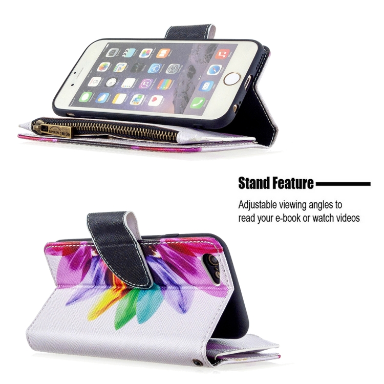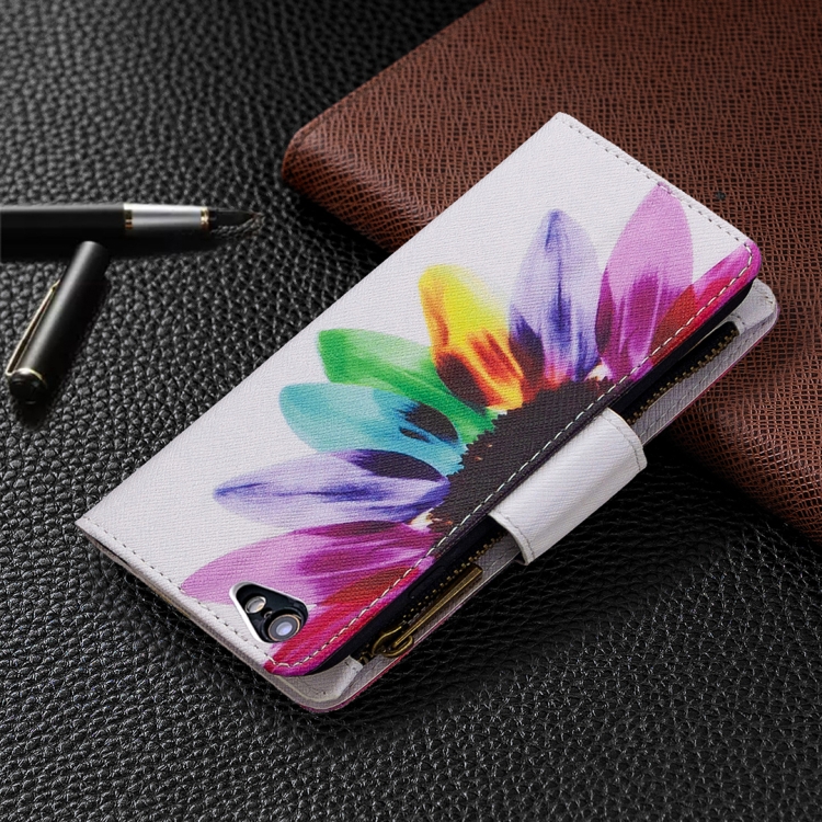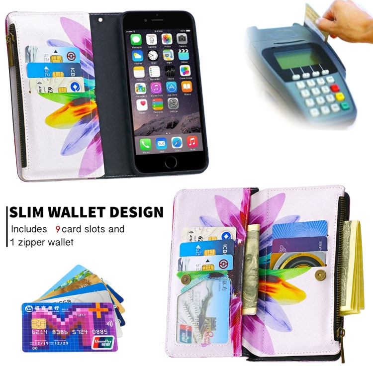 Funda de Cuero iPhone 6S y 6 Cremallera con Soporte y Ranuras para Tarjetas (Sun Flower)