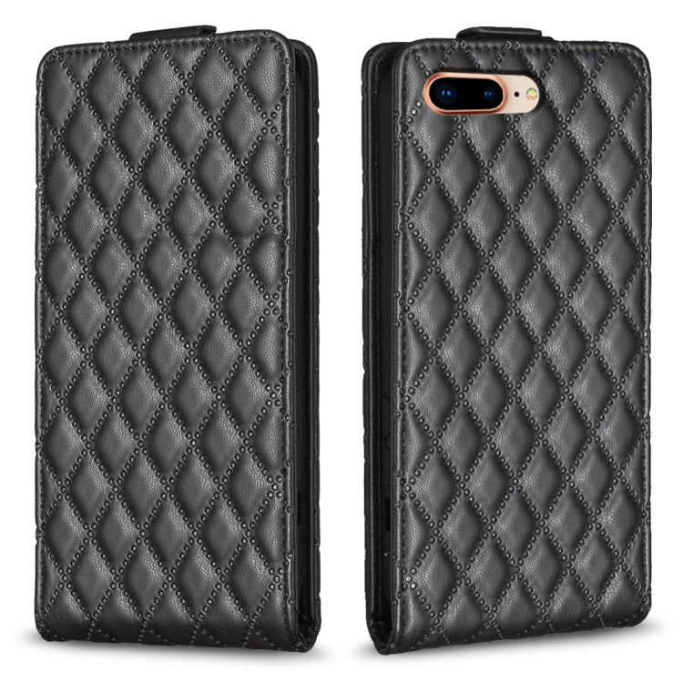 Funda de Cuero iPhone 7 Plus 8 Plus Diamond Lattice Tapa Vertical (Negro)
