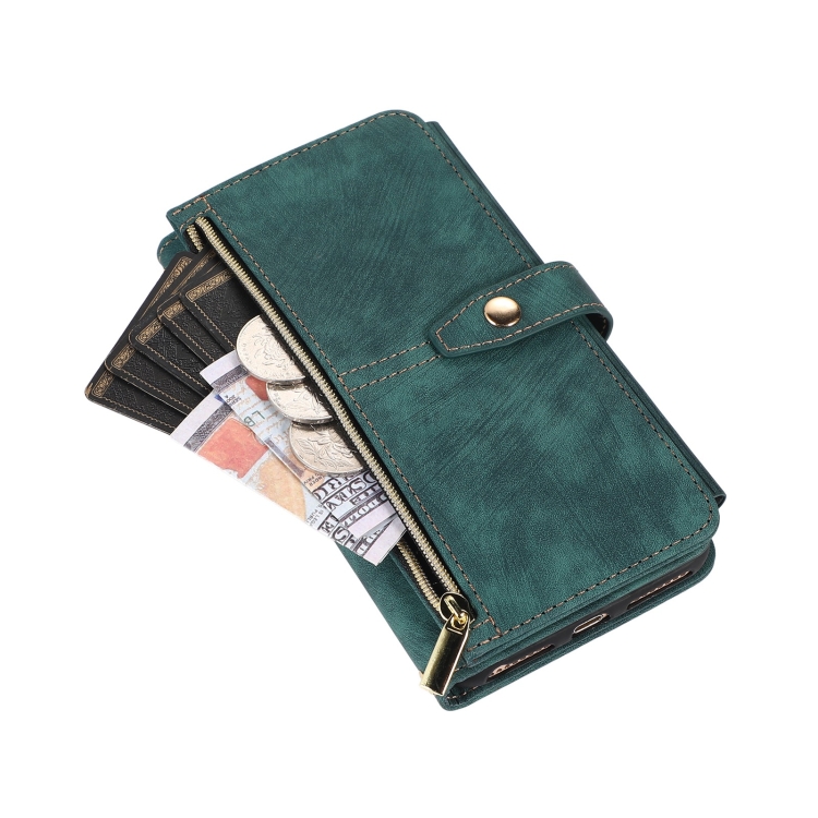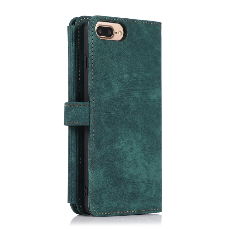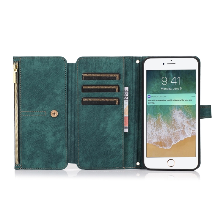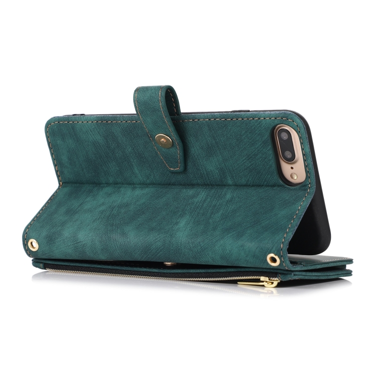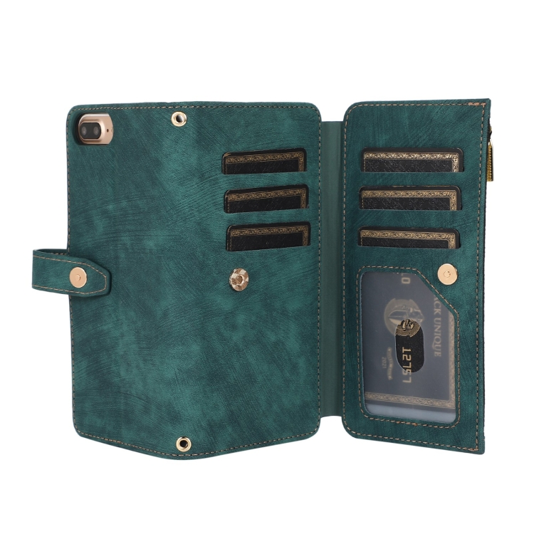 Funda de Cuero para Teléfono iPhone 7 Plus 8 Plus Dream 9-Card Wallet Zipper Bag (Verde)