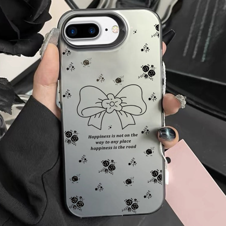 Funda híbrida para iPhone 7 Plus 8 Plus TPU para PC con pintura plateada (Lazo floral negro)