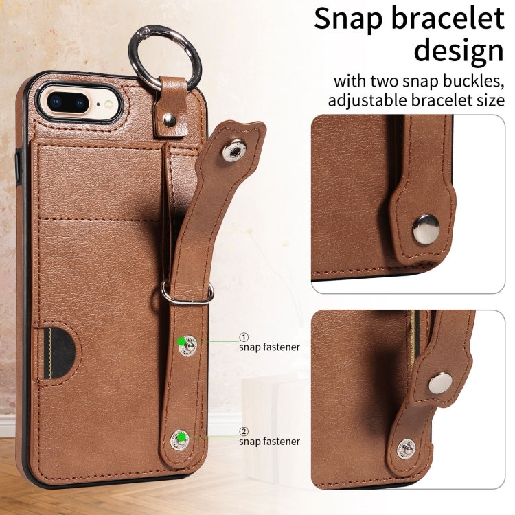 Funda para Teléfono iPhone 7 Plus/8 Plus con Anillo y Ranura para Tarjeta Textura de Pantorrilla (Marrón)