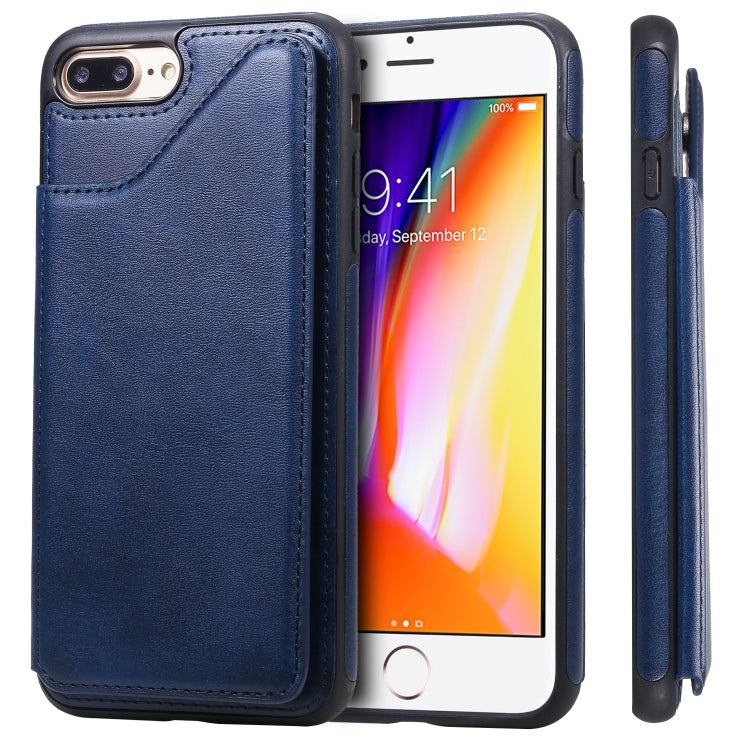 Funda Protectora iPhone 7 Plus 8 Plus Textura Pantorrilla Soporte Ranuras Tarjetas (Azul)