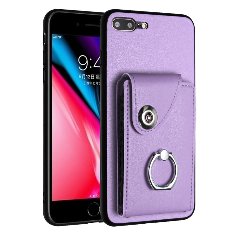 Funda para Teléfono iPhone 8 Plus/7 Plus con Soporte para Anillo y Bolsa para Tarjeta (Púrpura)