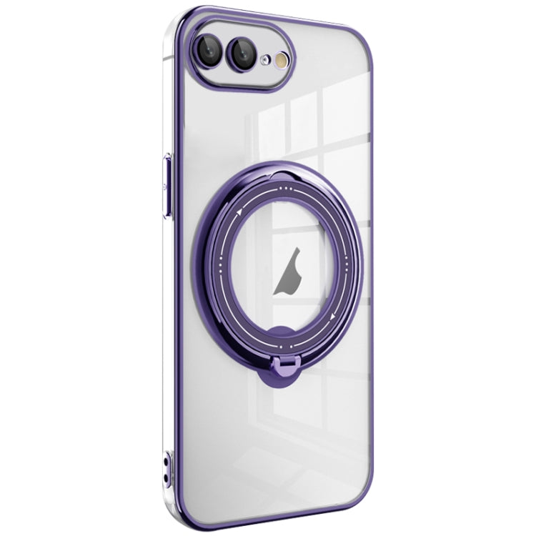 Estuche para teléfono iPhone 8 Plus/7 Plus Galvanoplastia Magsafe Soporte rotación 360 grados (Púrpura Oscuro)